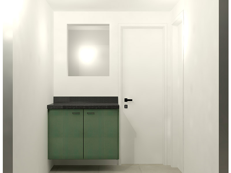 Sim. Planejamos o espaço completo, incluindo soluções práticas como armários superiores, prateleiras e nichos organizadores.
