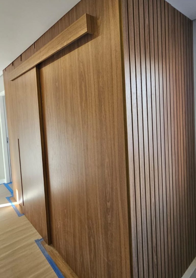 Trabalhamos com portas de madeira sob medida, incluindo portas de abrir, correr, pivotantes e sanfonadas, sempre adaptadas ao estilo e às necessidades do seu projeto.